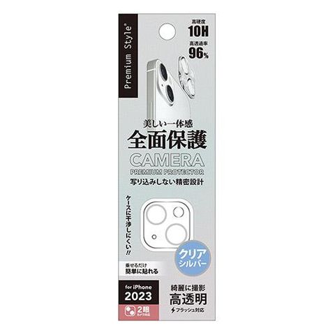 PGA iPhone15/15 Plus用 カメラフルプロテクター クリア/シルバー