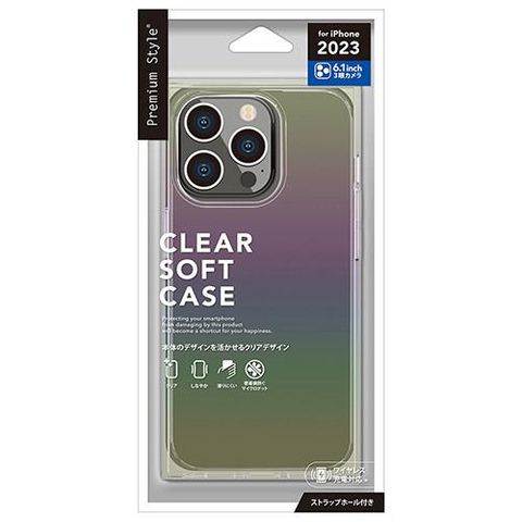 PGA iPhone15 Pro用 ソフトケース スクエアデザイン オーロラ