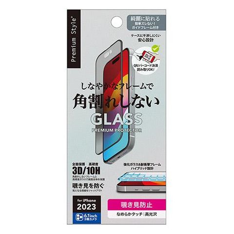 PGA iPhone15 Pro用 ガイドフレーム付 液晶全面保護ガラス 覗き見防止