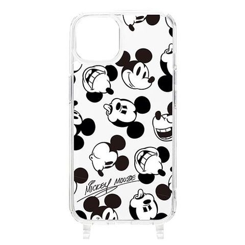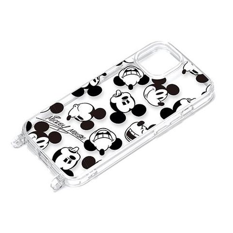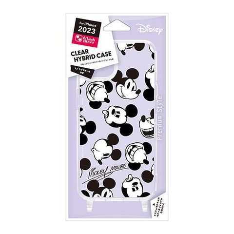 PGA iPhone15用 ショルダーストラップホール付クリアハイブリッドケース ミッキーマウス