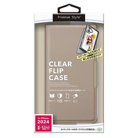 PGA PG-24ACF02BE ベージュ iPhone16用 クリアフリップケース