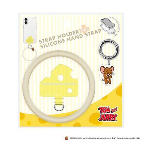 ■「トムとジェリー」デザインの手首や腕に通して使用できるストラップホルダー付 シリコンハンドストラップです