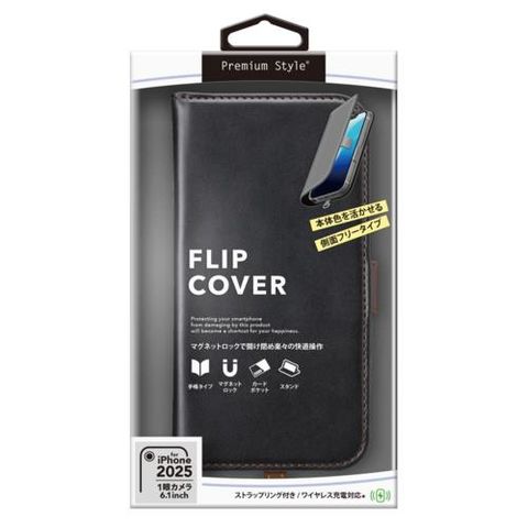 PGA PG-25KFP02BK ブラック iPhone 16e用 フリップカバー PUレザー 手帳型ケース