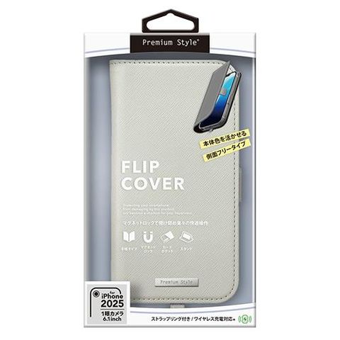 PGA PG-25KFP05GY グレー iPhone 16e用 フリップカバー サフィアーノ調 手帳型ケース