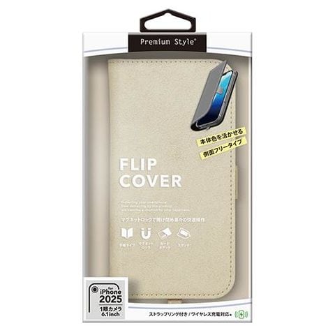 PGA PG-25KFP08BE ベージュ iPhone 16e用 フリップカバー スエード調 手帳型ケース