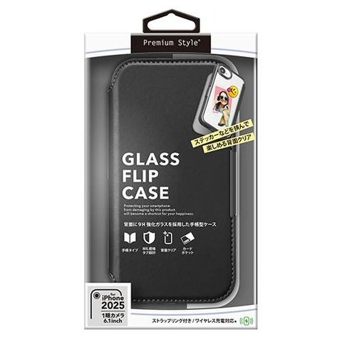 PGA PG-25KGF01BK ブラック iPhone 16e用 ガラスフリップケース PUレザー 手帳型ケース