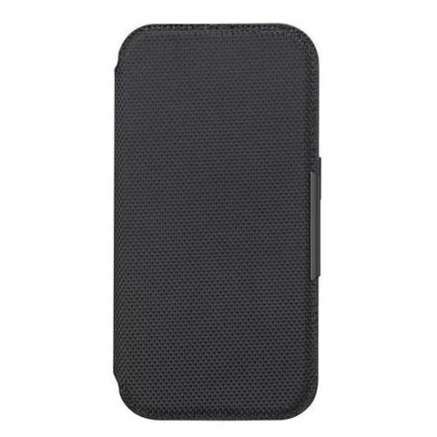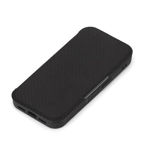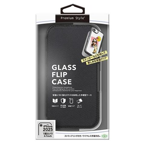 PGA PG-25KGF03BK ブラック iPhone 16e用 ガラスフリップケース ナイロンメッシュ調 手帳型ケース