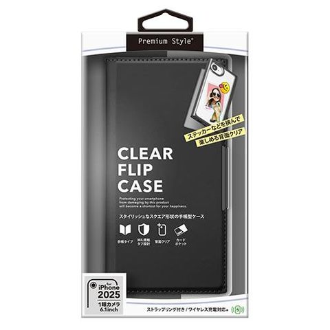 PGA PG-25KCF01BK ブラック iPhone 16e用 クリアフリップケース PUレザー 手帳型ケース