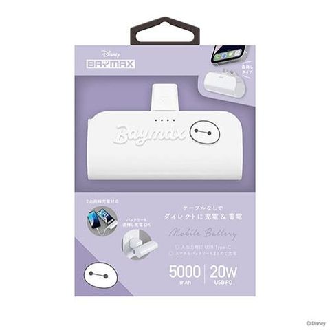 PGA PG-DLB50C05BAY ベイマックス USB Type-C 直挿しモバイルバッテリー 5000mAh/PD20W ディズニーキャラクター PSE適合商品