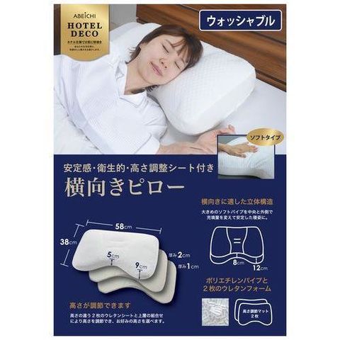 アベイチ 横向きピロー 38×58cm 一流ホテルが採用枕 寝具 枕 まくら マクラ 睡眠 快眠 特殊立体構造 ホワイト