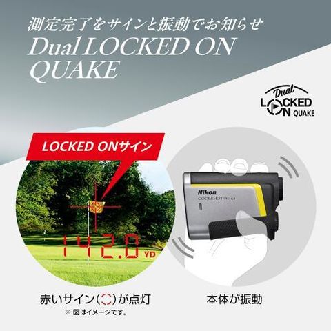■赤いサインと振動でピンフラッグが測れたことをお知らせする「Dual LOCKED ON QUAKE」機能