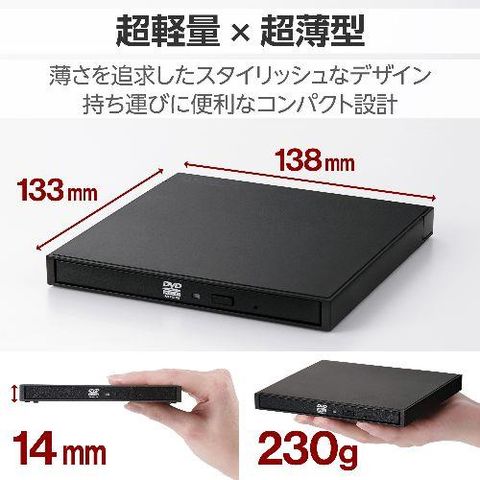■厚さ9.5mmの超薄型ドライブを採用。変換基板を内蔵し、持ち運びに便利なコンパクト設計に仕上げました。