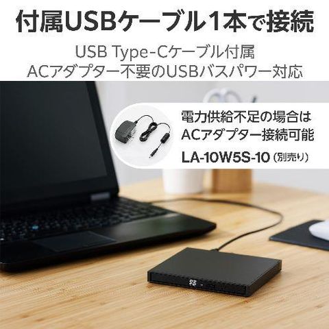 ロジテック(LOGITEC) LDR-PXA8CU2VBK ブラック 外付け DVDドライブ CD / DVD USB 2.0 Type-Cケーブル付属 書込み/再生/編集 バスパワー M-DISC対応 超薄型