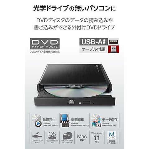 ロジテック(LOGITEC) LDR-PMM8U2VBK ブラック DVDドライブ 外付け 再生・編集・書き込みソフト一式 M-DISC対応 USBバスパワー+外部電源ポート