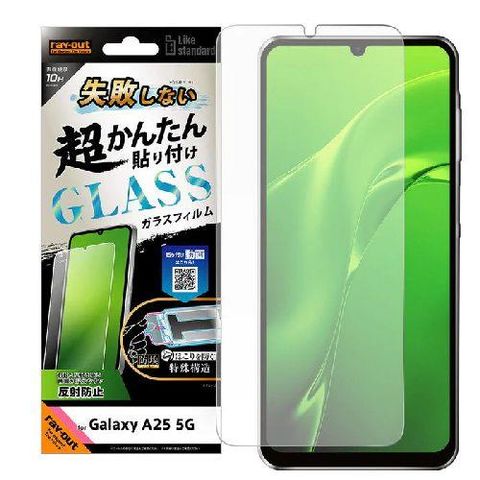 ray-out(レイ・アウト) RT-GA25FK/SHG Galaxy A25 5G用 失敗しない 超かんたん貼り付け キット付き ガラスフィルム 10H 反射防止 指紋認証対応