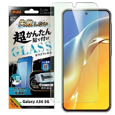 ray-out(レイ・アウト) RT-GA36FK/SMG Galaxy A36 5G用 超かんたん貼り付け キット付き ガラスフィルム 10H ブルーライトカット 光沢 指紋認証対応