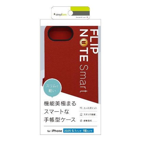 トリニティ TR-IP25S-FNS-LRD レッド iPhone 16e用 [Smart FlipNote] 薄型スマートフリップノートケース 横開きタイプ