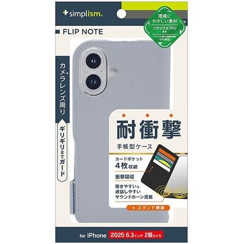 トリニティ iPhone17用 FlipNote 耐衝撃フリップノートケース ブルー TR-IP25M2-FN-SHBL