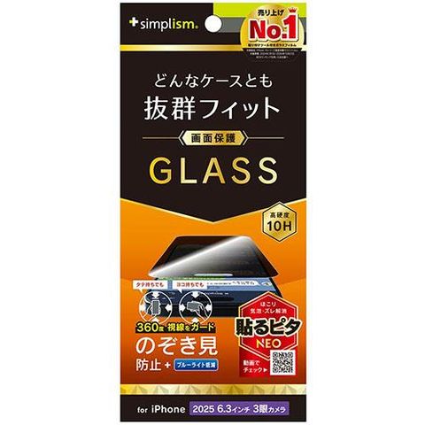 トリニティ iPhone17 Pro用 ケースとの相性抜群 360° のぞき見防止 画面保護強化ガラス 光沢 TR-IP25M3-GLS-LFPVCC