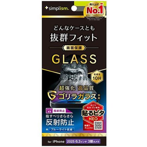 トリニティ iPhone17 Pro用 ケースとの相性抜群 ゴリラガラス 反射防止 黄色くないブルーライト低減 画面保護強化ガラス
