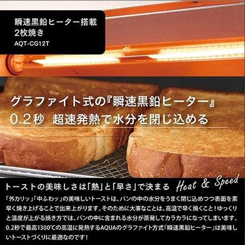 アクア(AQUA) AQT-CG12T-W ホワイト オーブントースター グラファイト式瞬速黒鉛ヒーター 2枚焼き