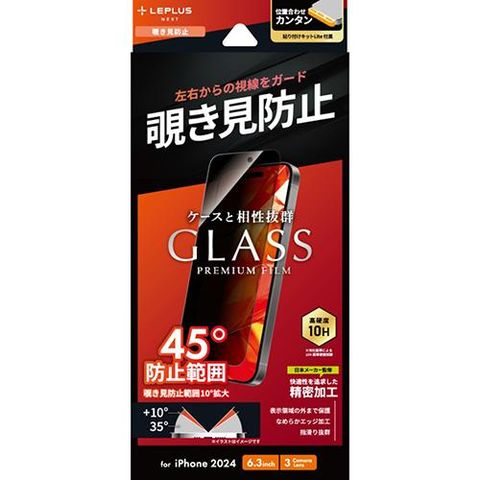 MSソリューションズ LNIP24FGLN iPhone16Pro用 ガラスフィルム GLASS PREMIUM FILM Lite 覗き見防止180°
