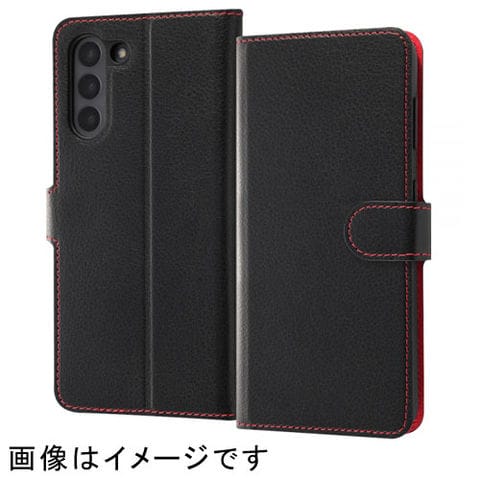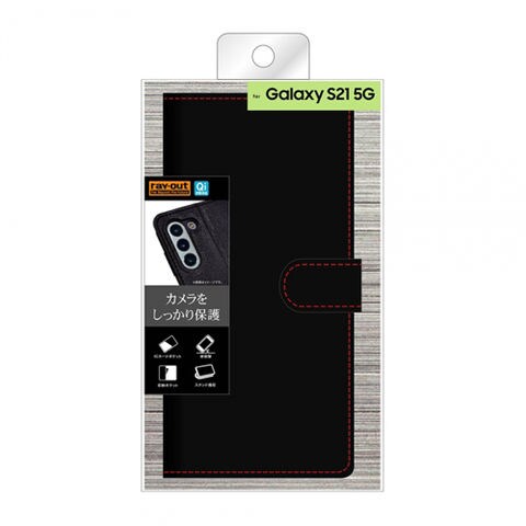 ray-out(レイ・アウト) RT-GS21ELC1/BR ブラック/レッド Galaxy S21 5G用 耐衝撃 手帳型ケース シンプル