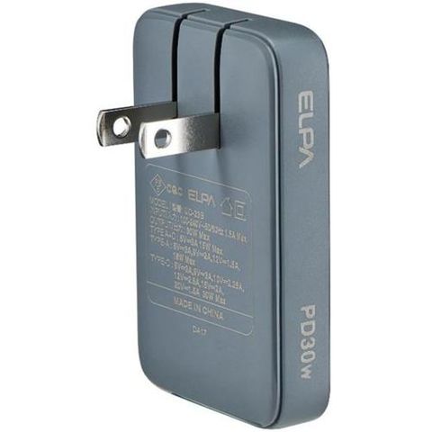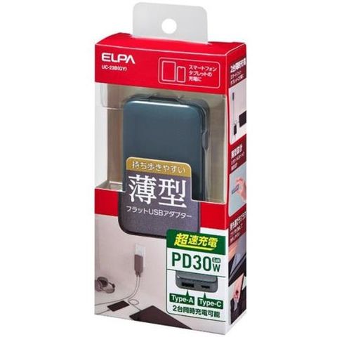エルパ(ELPA) UC-23B-GY グレー USB急速充電器 フラットUSBアダプター PD 30W USB Aポート×1 Cポート×1