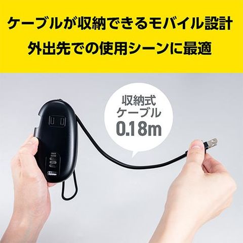 ナカバヤシ JYU-ACU012BK ブラック モバイルUSB-ACタップ PD対応 65W