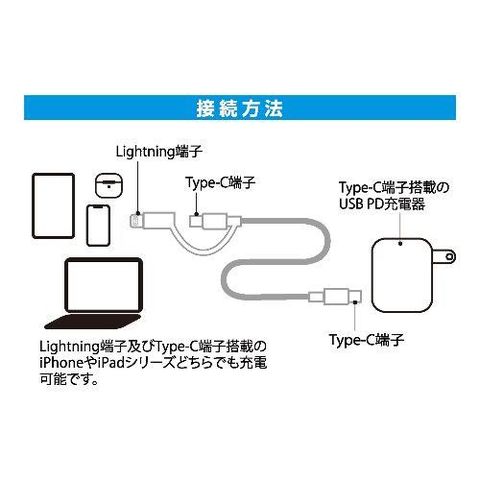 ■Lightning変換アダプタ搭載でUSB-C端子 と Lightning端子両方で充電可能