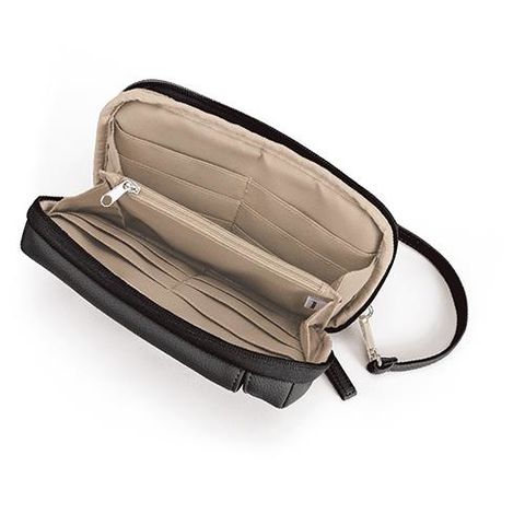 ■収納部分はダブルファスナーで大きく開き、マチがあるため鍵やリップなどの小物が収納可能