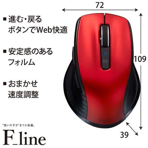 ナカバヤシ MUS-BKF228R レッド F_line Bluetooth静音5ボタンBlueLEDマウス