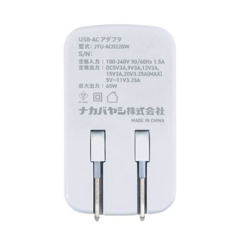出力(OUTPUT):5V3A、 9V3A、12V3A、15V3A、 20V3.25A、 5~11V3.25A(65W Max)