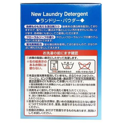 表示成分/全成分:界面活性剤(15%、高級アルコール系(非イオン)、純石けん分(脂肪酸ナトリウム)、アルキル硫酸塩)、アルカリ剤(炭酸塩)、水軟化剤(アルミノけい酸塩)、工程剤(硫酸塩)、分散剤、再付着防止剤、漂白剤(酸素系)、生分解促進剤、酵素
