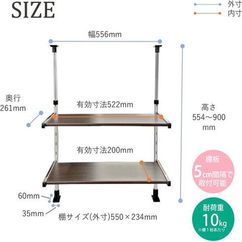 田窪工業所 MTP2-55 木目調 つっぱり棚 2段 幅55cm スチール製 モクメタル