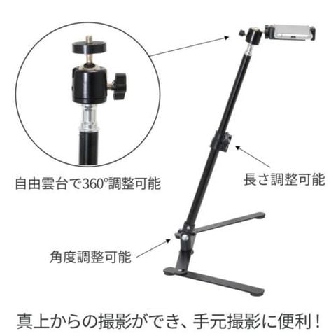 高さ調整も可能。真上からの撮影ができるので手元撮影に便利!