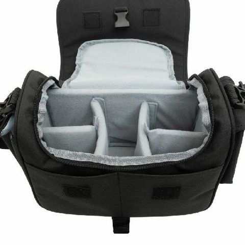 ■ほどよいクッション性でカメラをしっかり保護します。メインの収納スペースには中仕切りが大小2枚ずつあり、機材に合わせて位置を調整可能。