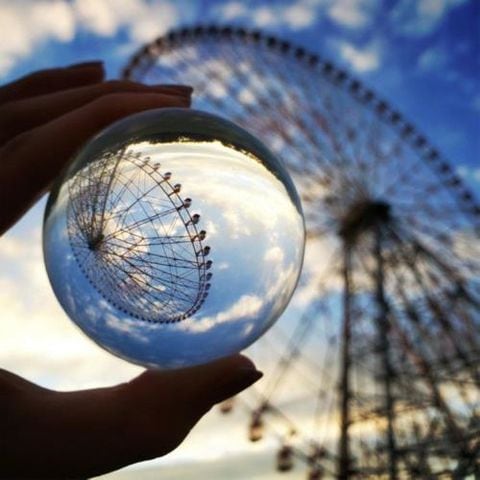 ■180°のダイナミックな風景を手のひらに収めたり、レンズボール自体を被写体にして写真のアクセントとして使用できます