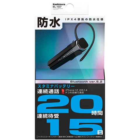 カシムラ(Kashimura) BL-107-BK ブラック スタミナ&防滴 Bluetoothイヤホンマイク ノイズ エコーキャンセラー