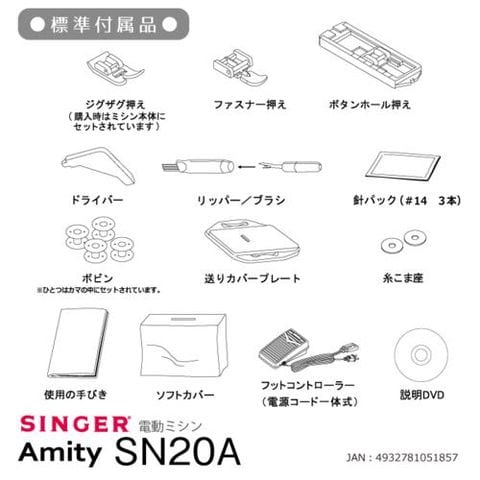 シンガー(SINGER) Amity SN-20A フットコントローラー付き 電動ミシン 軽量 コンパクト