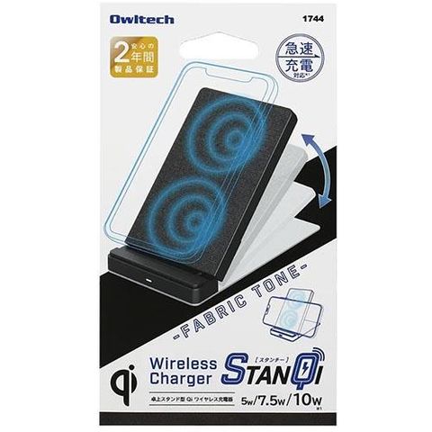 オウルテック(OWLTECH) OWL-QI10W05-BK ブラック 急速充電対応 ファブリック調デザイン 卓上スタンド型 Qi ワイヤレス充電器スタンド STANQi