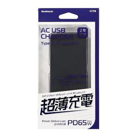 オウルテック(OWLTECH) OWL-APD65SC1A1G-BK ブラック USB Type-C×1 USB Type-A×1 AC充電器