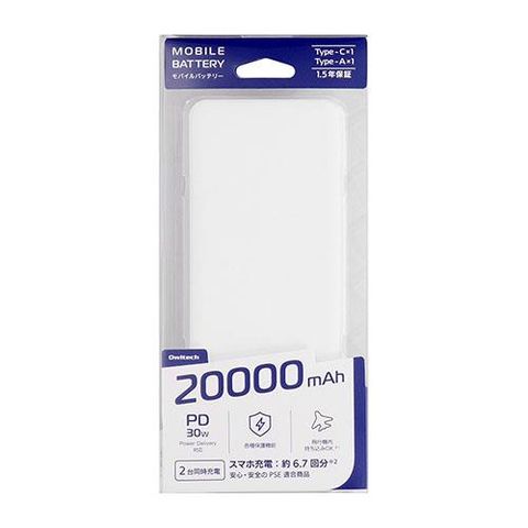 オウルテック(OWLTECH) OWL-LPB20016-WH ホワイト 20000mAh 最大PD30W対応 USB Type-C入出力/USB Type-A出力 モバイルバッテリー
