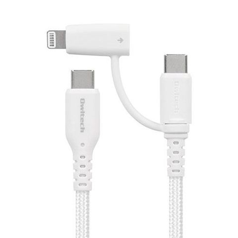オウルテック(OWLTECH) OWL-CBNCCL15-WH ホワイト 超タフで断線に強い PD60W充電/データ転送 USB Type-C to Type-C/Lightning 2in1ケーブル 1.5m