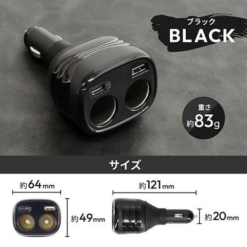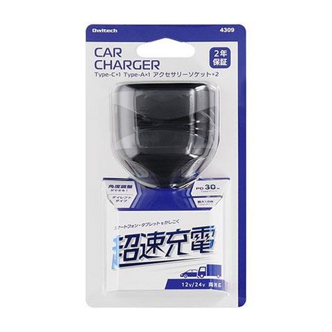 オウルテック(OWLTECH) OWL-CCUCD2D2-BK ブラック 2ポート /USB Power Delivery対応ダイレクト型車載充電器 2穴+Type-A+Type-C/PD30w 分配器