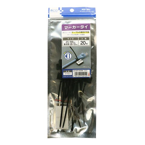 ミヨシ CW-MT100-BK 黒 マーカータイ 2.5×100mm 20本 表示シール付