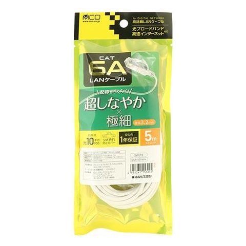 ミヨシ C6A-S05WH ホワイト カテゴリー6A 極細LANケーブル 5m