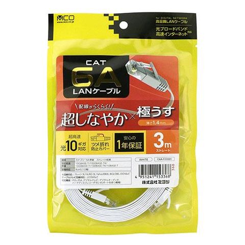 ミヨシ C6A-F03WH ホワイト カテゴリー6A 極うすLANケーブル 3m