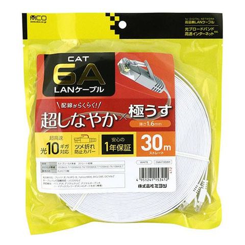 ミヨシ C6A-F30WH ホワイト カテゴリー6A 極うすLANケーブル 30m