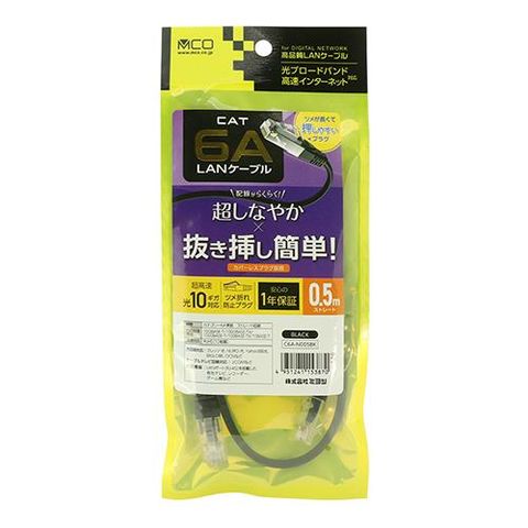ミヨシ C6A-N005BK ブラック 超しなやか 抜きやすいLANケーブル 0.5m